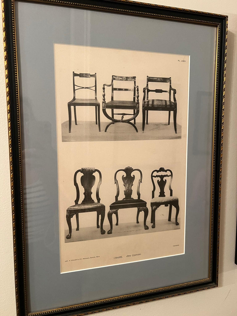 They found workbooks kept by her husband’s grandfather with catalogues of chair designs and style references. He would use these 18th century photographs as silhouette models and recreate designs inspired by them.