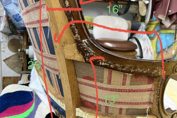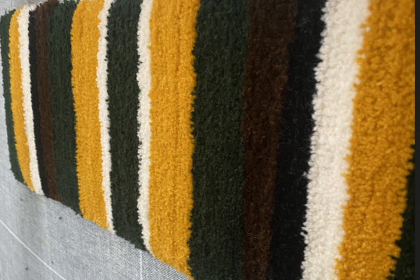 We decided to use the tufting technique for the back of a vintage settee similar to the image above. Tufting involves a handheld machine which shoots out tufts of yarn threads into a primary fabric that creates this fluffy rug effect.
