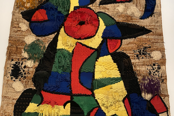 Last August I was lucky to spend two weeks in Barcelona. My kids were at camp during the day while my husband and I did work at cafes and soaked up the city. I love the colorful, surrealist vibe in Barcelona. One sweltering afternoon we visited the Joan Miro museum. I was inspired the heavy tufting and mix of colors in his textile murals–they felt fresh and playful. That night I started looking for local textile designers and found the wonderful Mariadela Araujo. To my amazement she responded to my inquiry and I was in her studio the next morning.