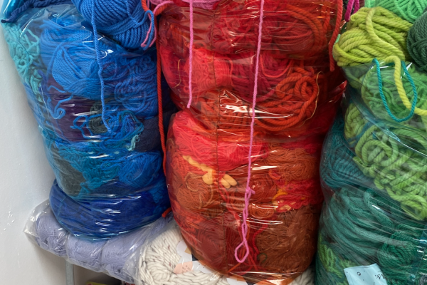 Piles of yarn organized by color in Mariadela’s studio. It was heavenly for me.
