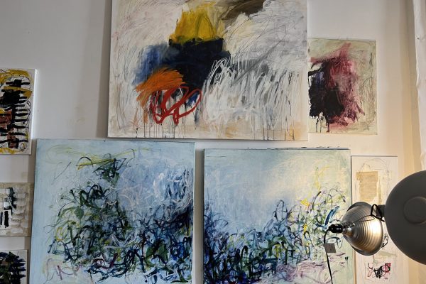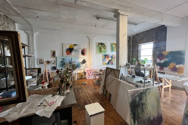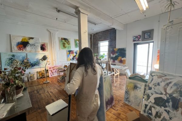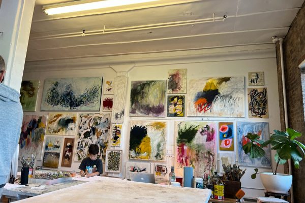 Michelle’s gallery wall is shown below. This past September I visited Michelle in her studio and fell in love with her work. Her rapid, thick brushstrokes are electrifying and animated, just like her personality. I took my family to Michelle’s studio during Gowanus Open Studios and right away she had my son expressing himself through color, inspired by Michelle’s paintings.