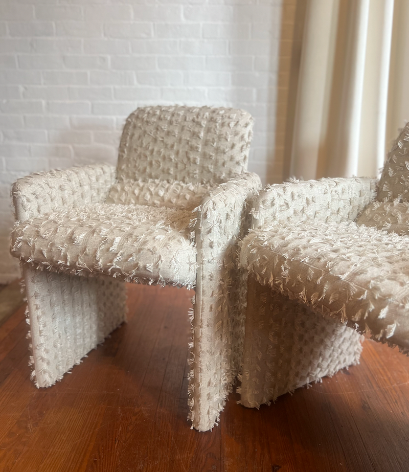 Eyelash fringe fabrics are an unexpected and playful detail that can add a lot of dimension and energy to a piece. Redefining furniture with a lot of personality.