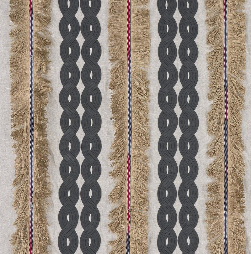 The above design is Pierre Frey’s Tuamotu, the jute stripes are made of loose eyelash fibers which add life and movement to the fabric.