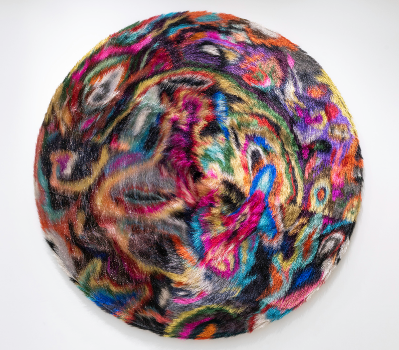 I heard the surface feels like porcupine quills. Nick Cave is known for his multi-media “Soundsuits” which are these magical objects that combine fashion and sculpture. The hairy Tondo sculpture reminded me of the eyelash fringe fabrics, now popular in upholstery and interiors, which feel very new and fresh to me.