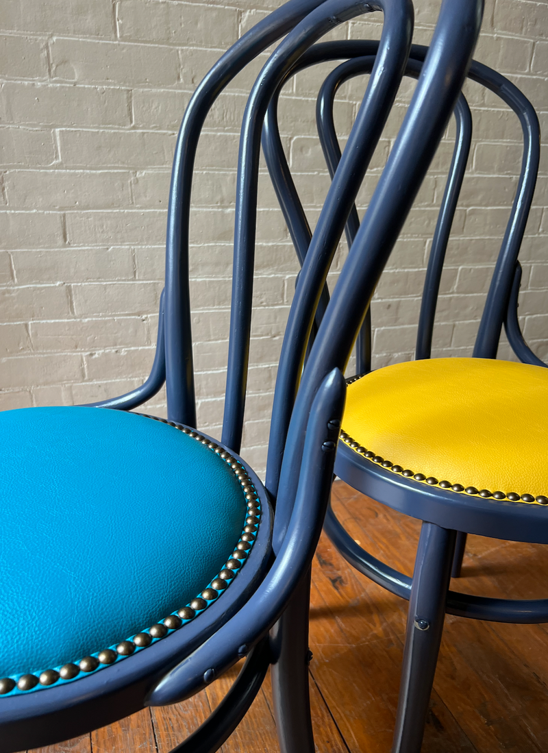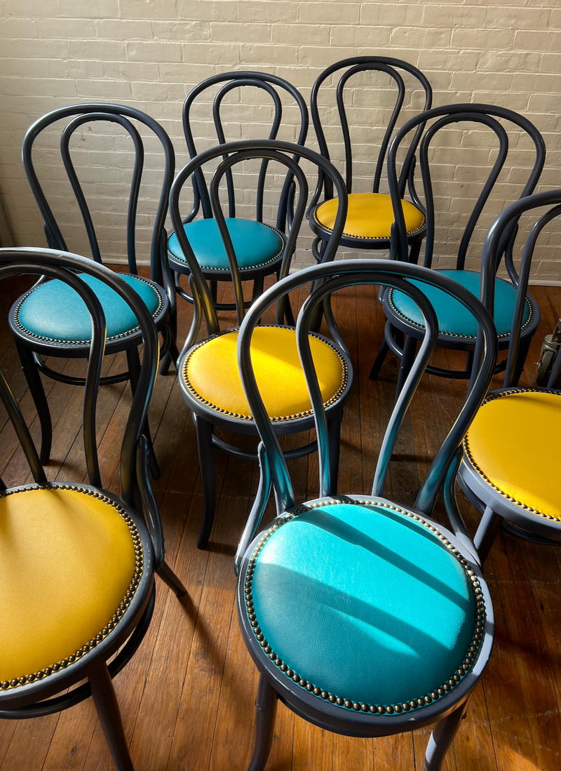 We recently spruced up a set of eight Bentwood chairs, otherwise known as Thonets (after German architect Michael Thonet.) The name ‘Bentwood’ is quite literal. Bentwoods have arguably the most recognizable silhouette of any chair that’s ever been produced.