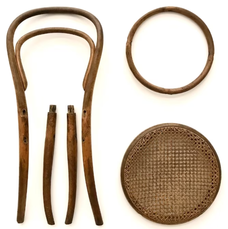 The original No.14 Thonet is made up of six pieces of wood, ten screws and two nuts. It was the first piece of furniture designed to be shipped in parts to save space during transportation and came with simple instructions to put it together. This was long before IKEA!