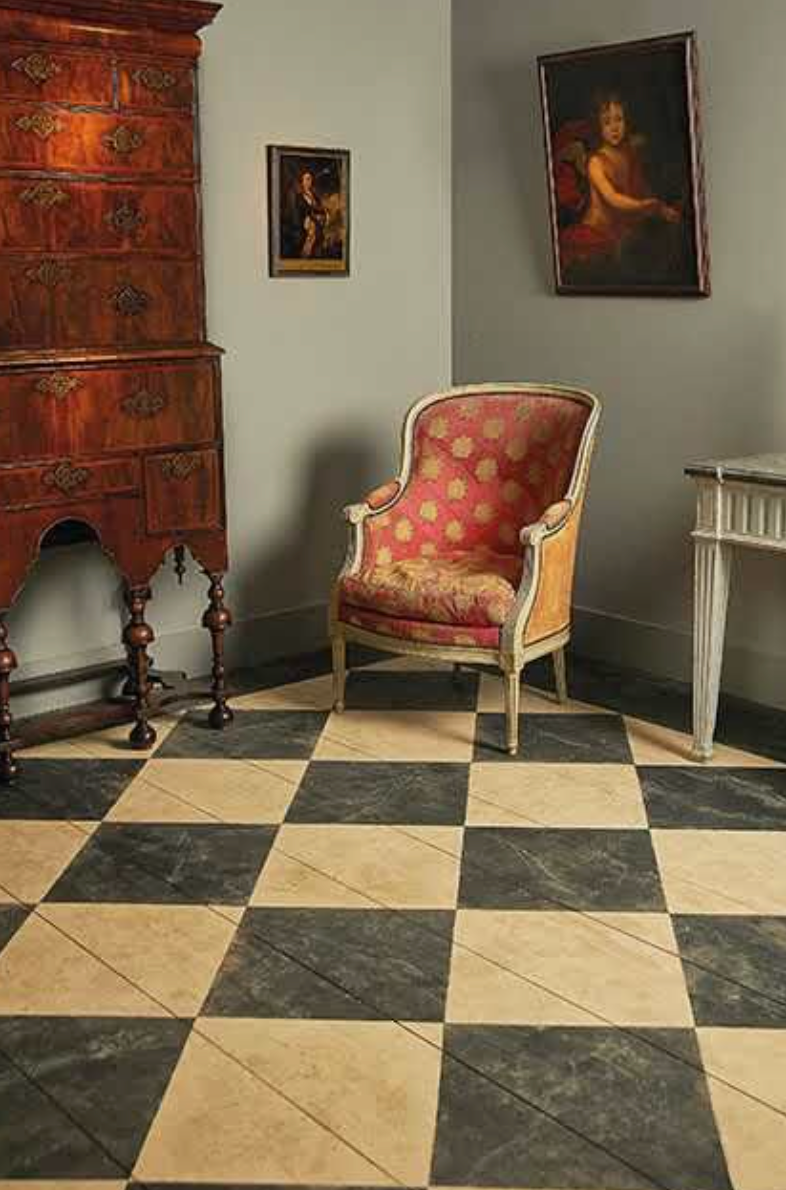 A checkered floor, like the one below, is so classic and chic. Over the years checkered floors have been done in linoleum, tile, paint and parquet.