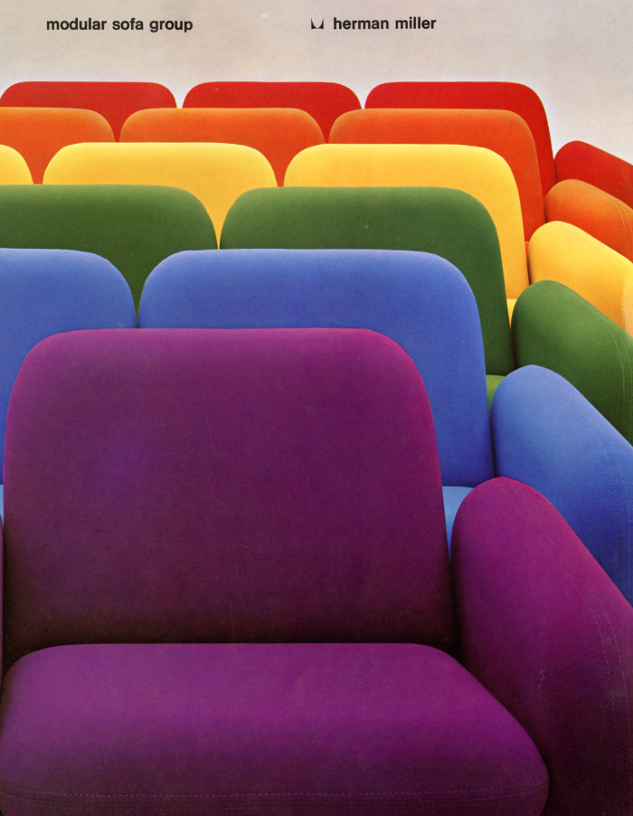 Forty-five years ago in a factory in Michigan, architect Ray Wilkes was trying to make a new type of furniture using a machine that injected foam into a mold. These machines created rounded, molded forms in which stretch fabric could be seamed around the edges. These forms became known as Chiclets.