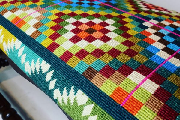 We decided to personalize the needlepoint by incorporating the family’s last name and the year of its creation. Almost like an engraved piece of silver, this bench stands as a true time capsule that will continue to live on in their family for decades to come.