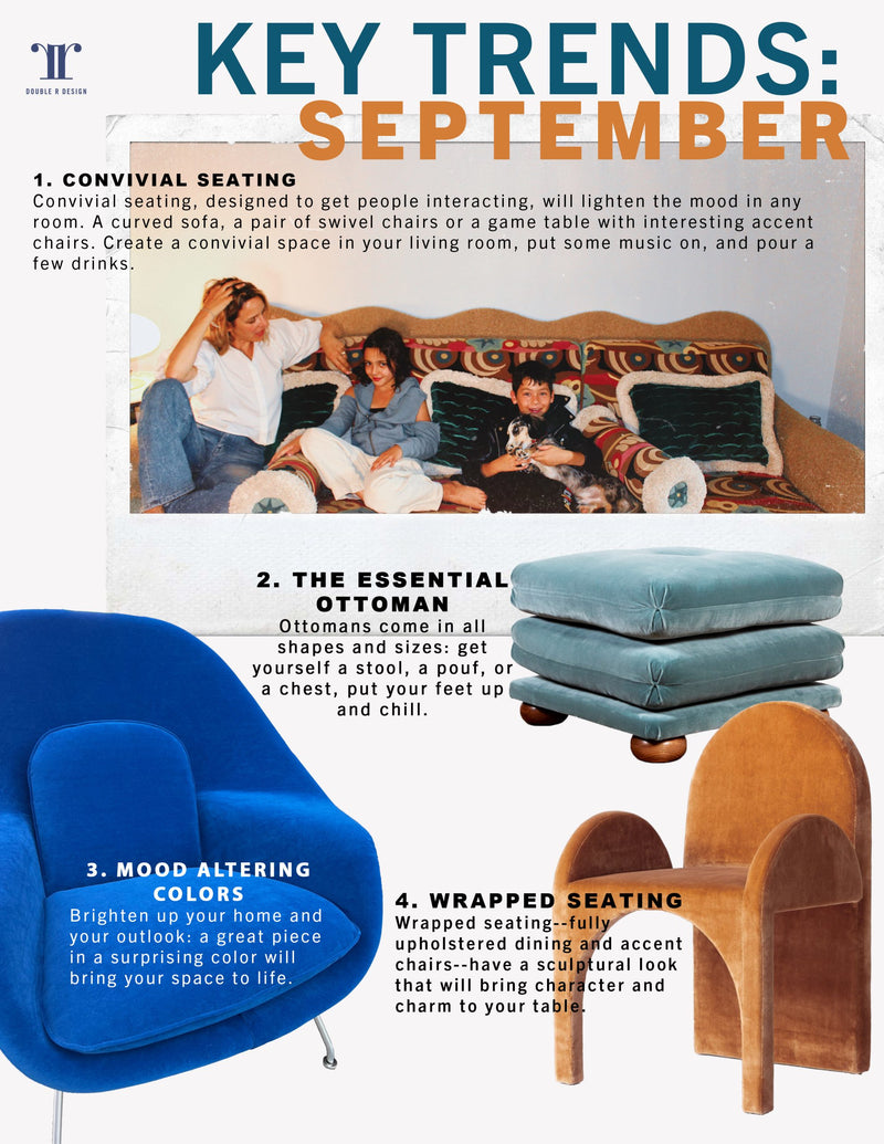 Shop convivial seating pieces on my website. These two swivel chairs or this pair of Adrian Pearsall lounge chairs create conversation-inducing seating arrangements.