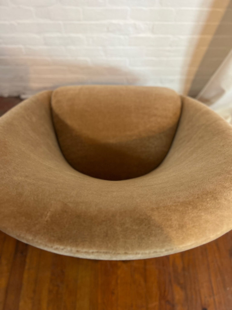 A Theo Ruth chair from France (featured in the first two images) and a reimagined heirloom ottoman.