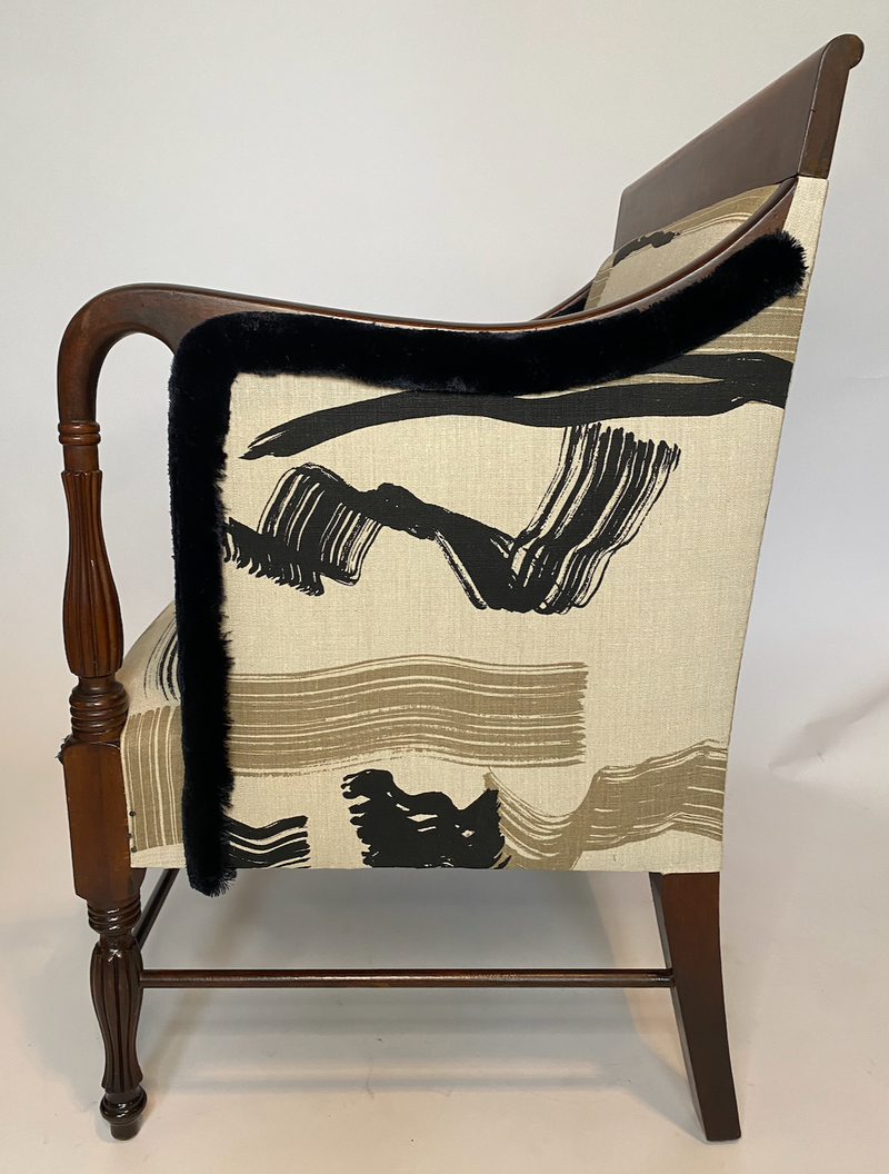 Above is a chair I picked up at the Brimfield market and refinished using Paola’s printed textile, Painted Desert. I was drawn to the movement in the brushstrokes and loved the juxtaposition of the fresh modern look against this traditional bergere style frame. You can find this chair for sale here on my website.