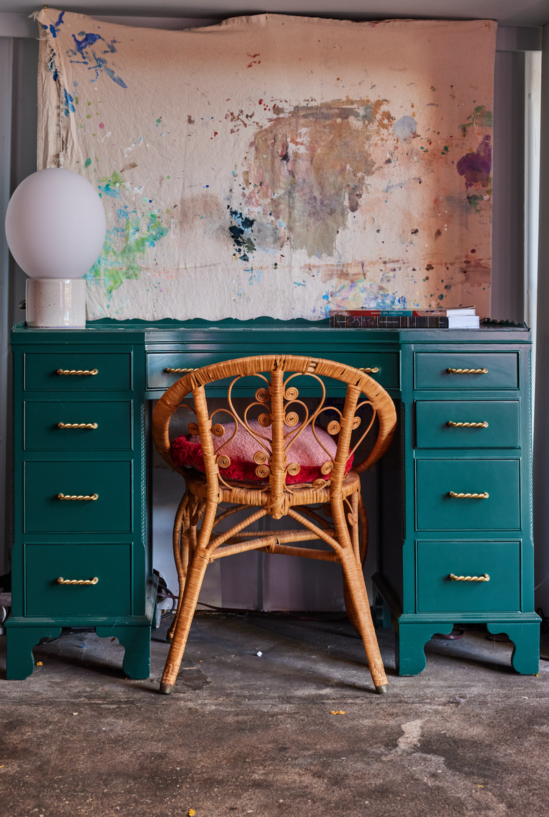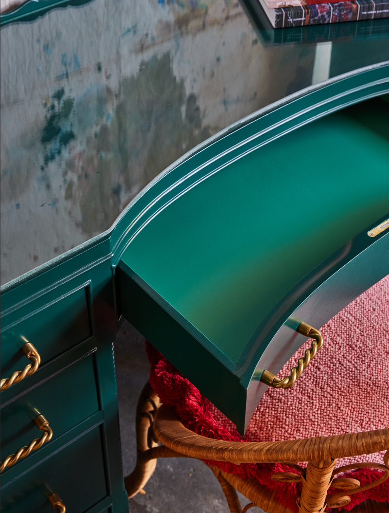 The interior drawers, in a lighter shade of green, offer a pleasing surprise.