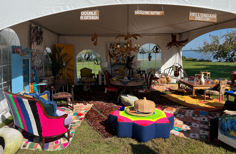 This is one of my favorite pieces that I’ve done. It’s a really cool piece of furniture re-imagined by a brilliant artist: a truly one-of-a-kind piece. Here it is in our booth at Field+Supply.