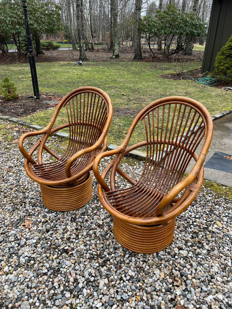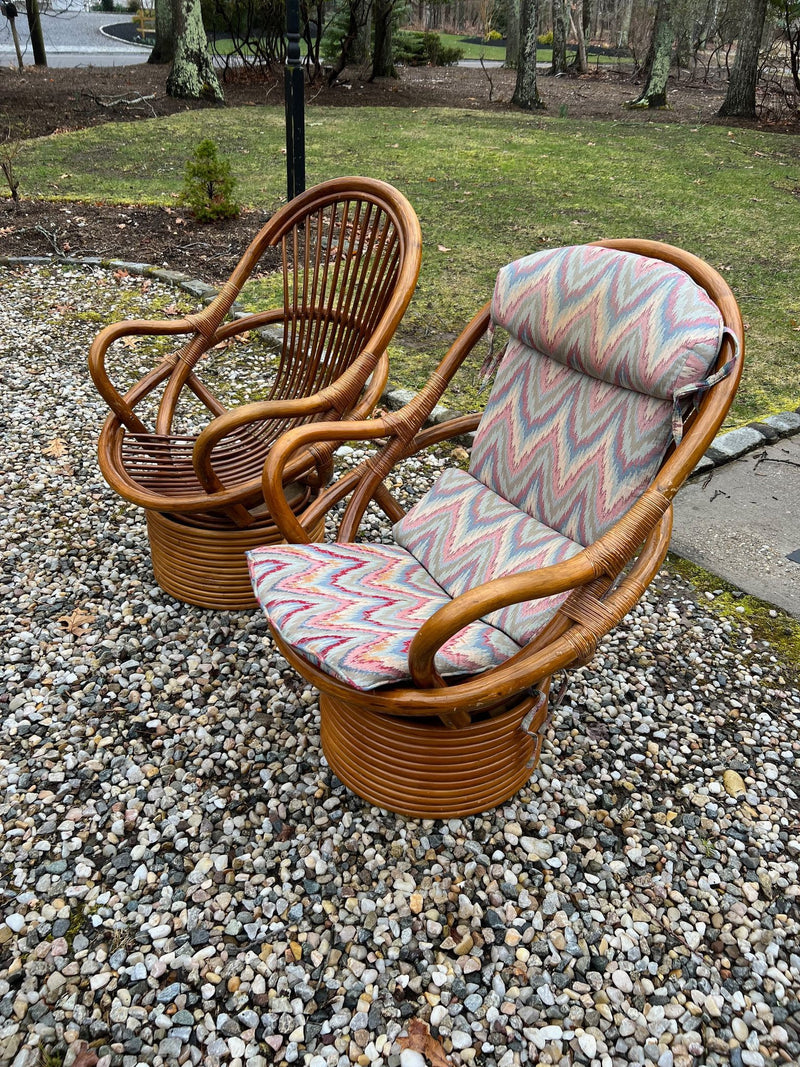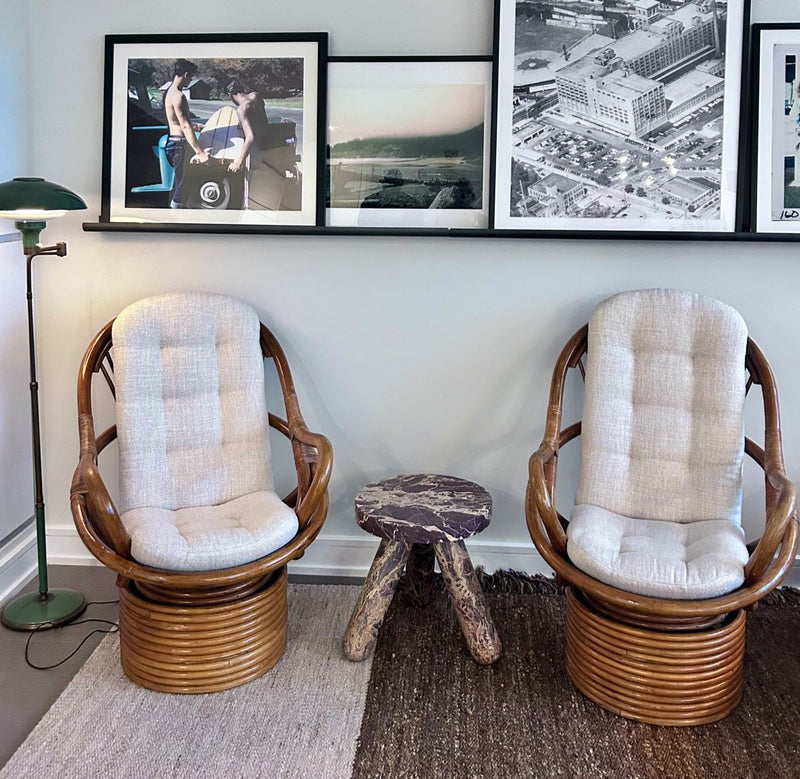 We recently created new cushions for this pair of vintage rattan swivel chairs. The finished products are featured above.