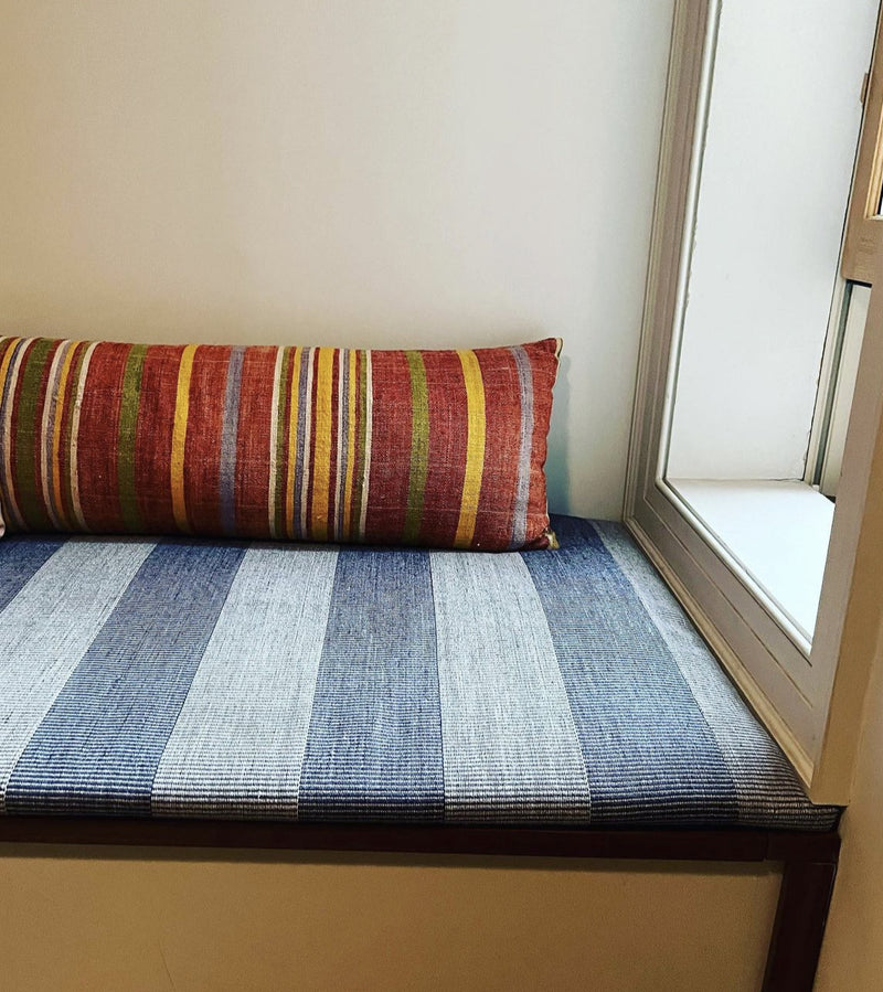 I love the this striped bench nook. The wide stripes are daring and classic, modern yet timeless, and easy to pair accessories with, like this fun striped pillow.