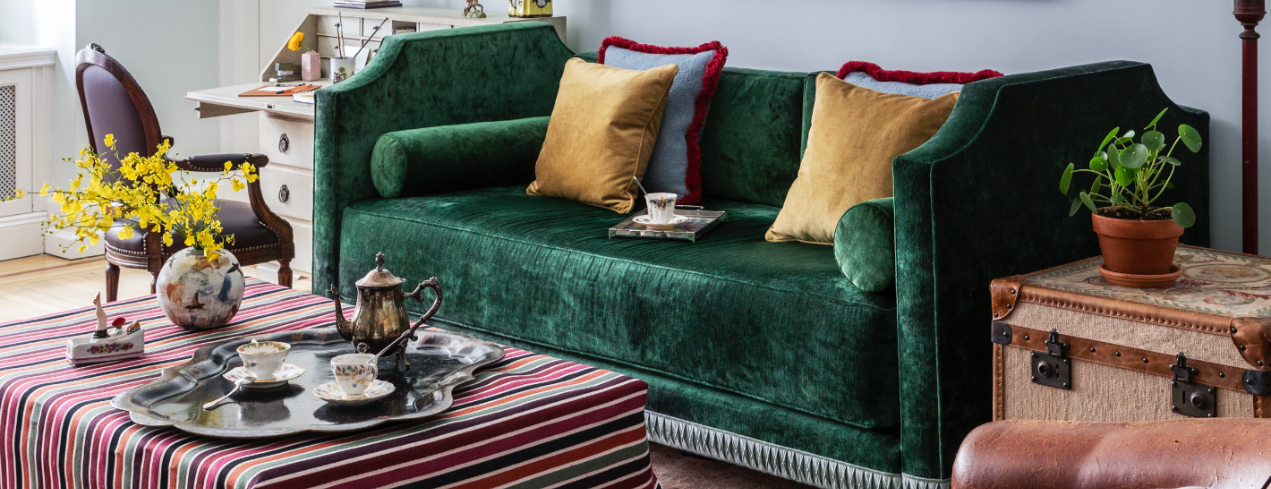 Rachael helped me transform my apartment into a haven of comfort and calm in the city. It was important to me to repurpose vintage items, so we brought new life to existing pieces, adding patterns and color with fresh textiles. She had the idea to carve out a small vanity nook in my bedroom, and a dedicated dining area in the living room space that serves so many purposes. I truly look forward to coming home every day to my serene, beautifully decorated space.
