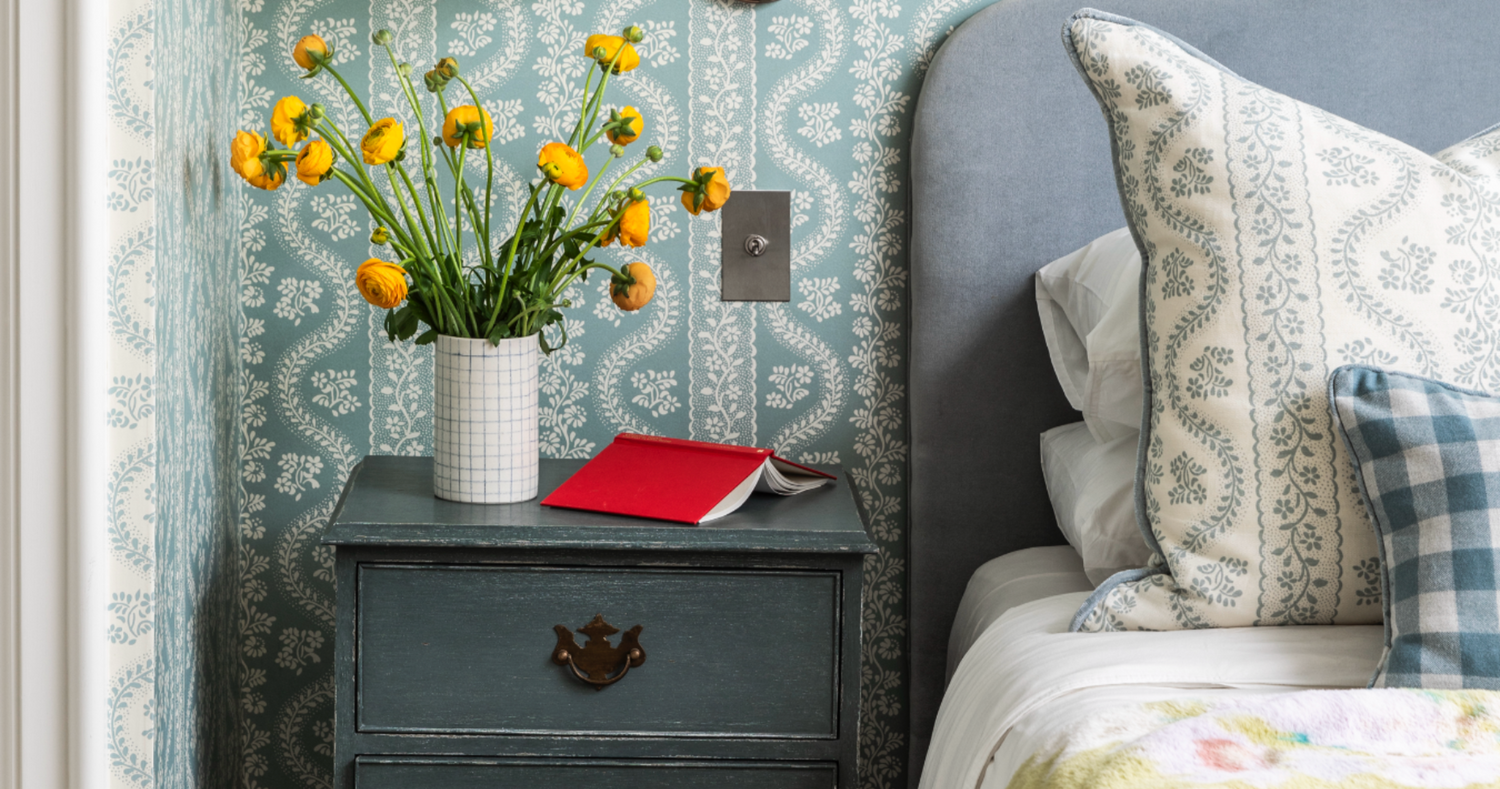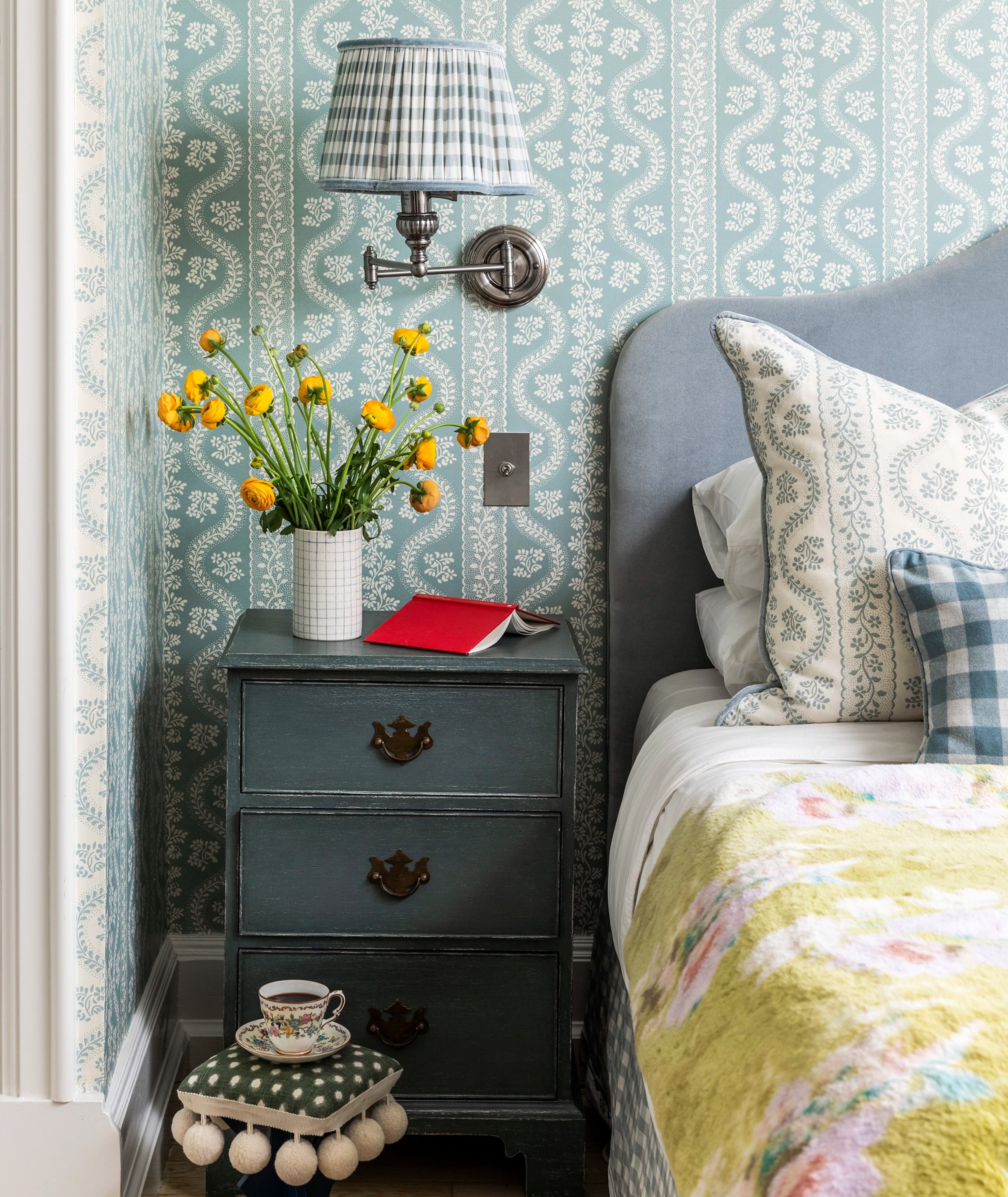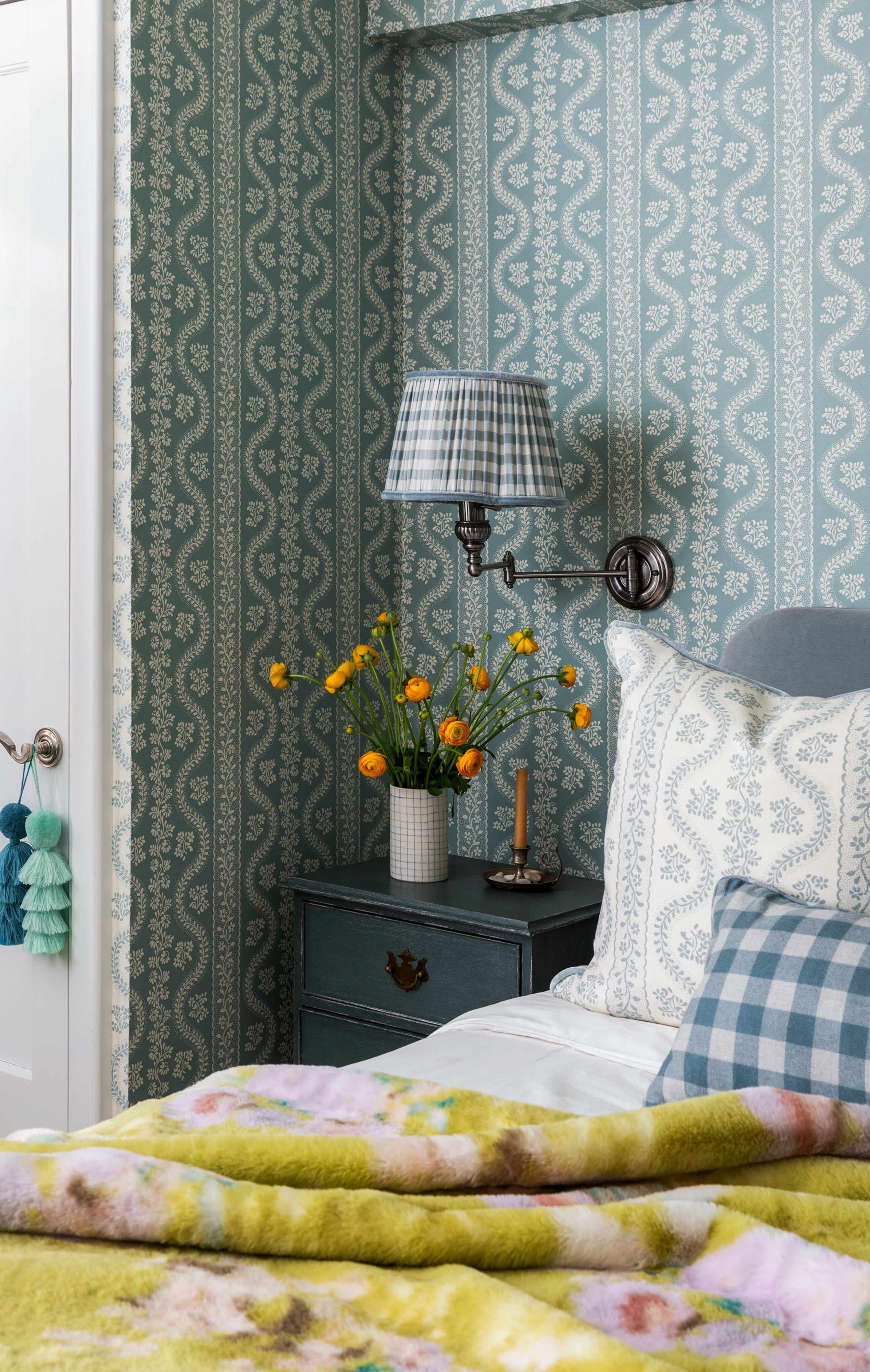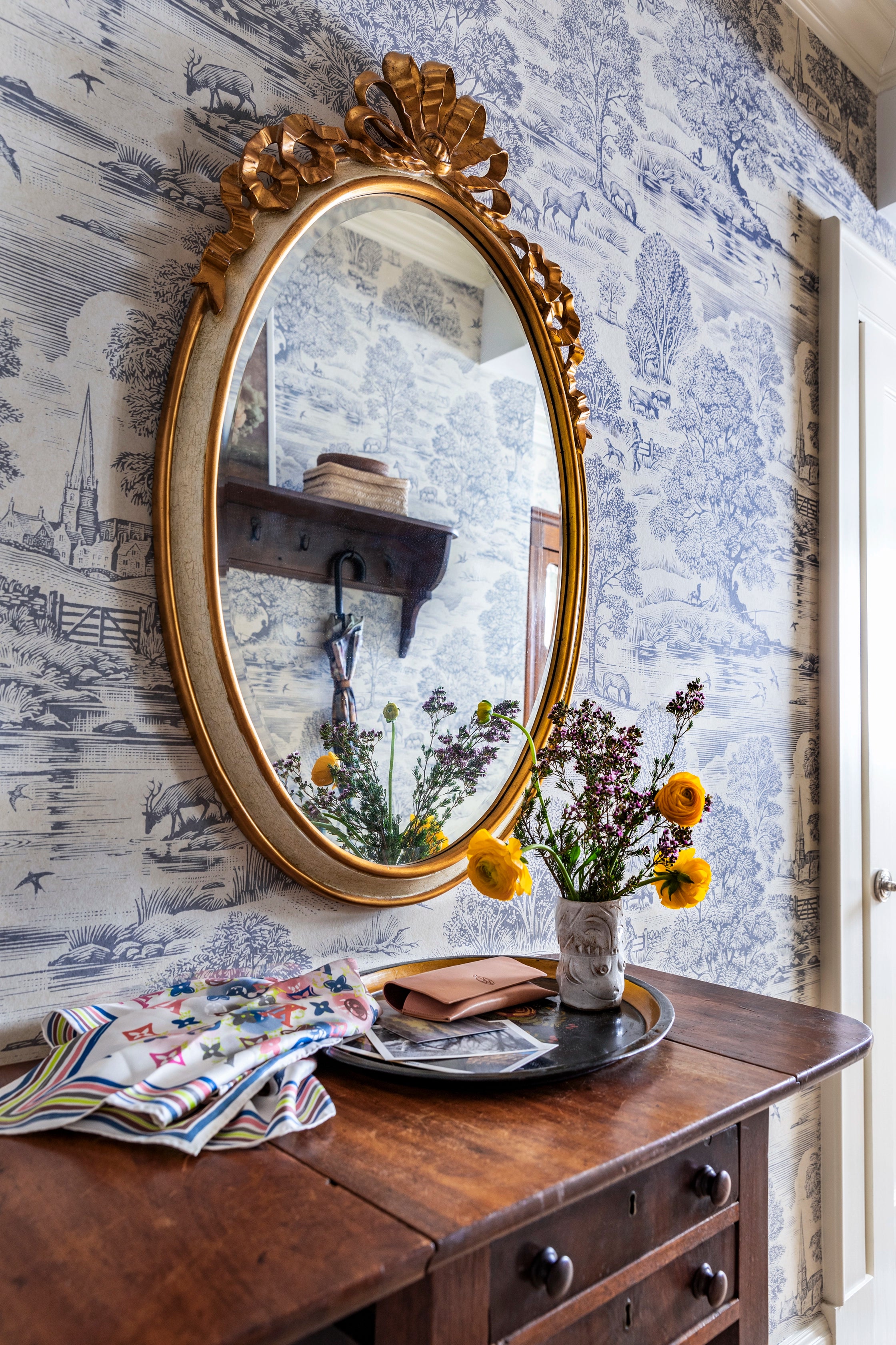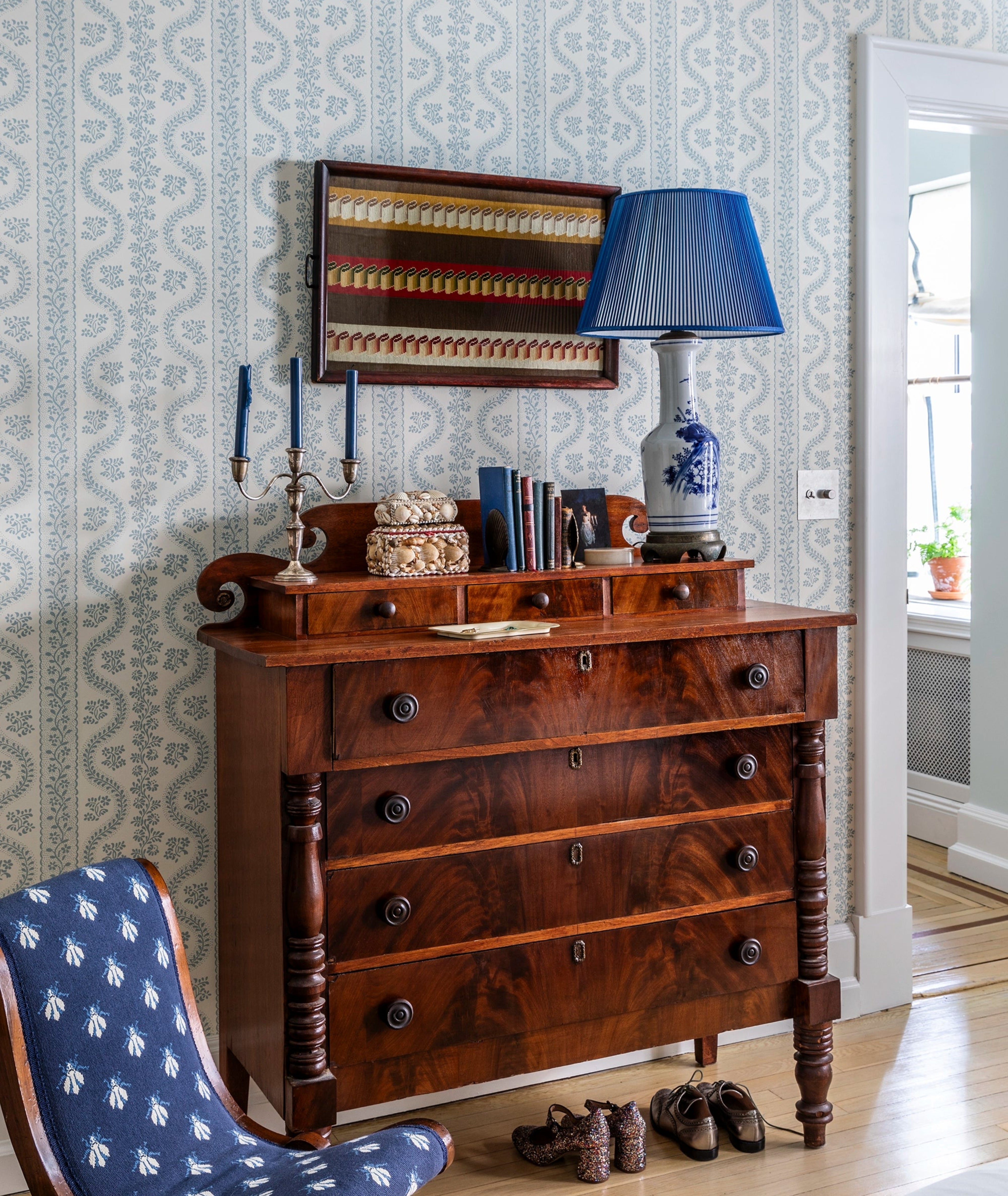 This was our client's existing antique chest of drawers. It really shines bright with the Sister Parish wallpaper in the room.