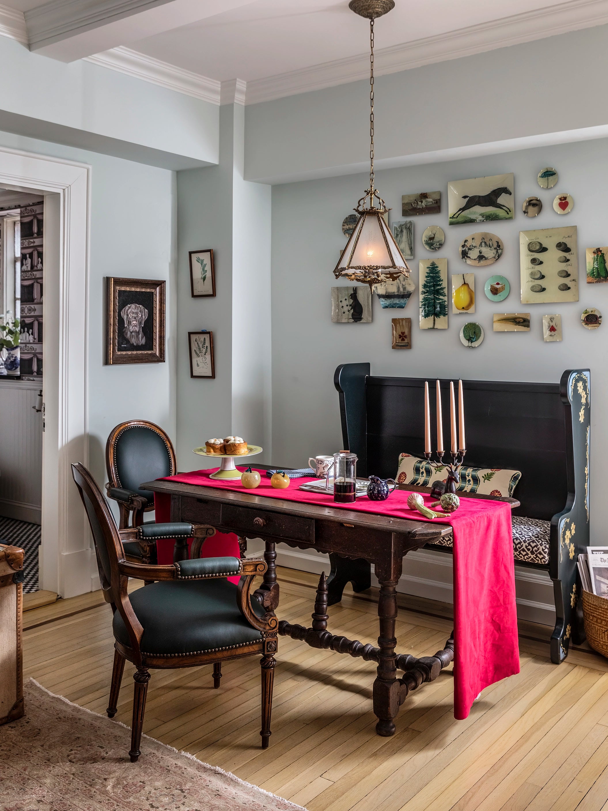 Our client has a true appreciation for unique vintage finds. This home was already adorned with several antique vintage pieces. Our job was to give the apartment a refresh with new window treatments and a new furniture plan that utilized every square inch.